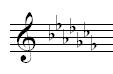 Quand il y a sept bémols (Si b, Mi b, La b, Ré b, Sol b, Do b, Fa b) à la clé, la tonalité sera Do b majeur ou Do b Ionien, la relative mineure sera La b mineur ou La b Aeolien.